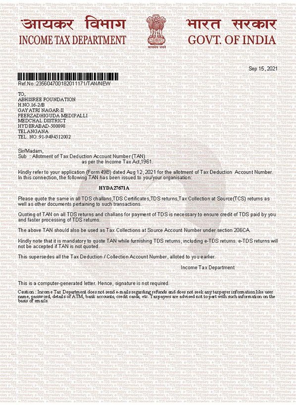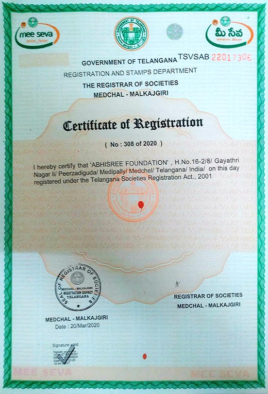 ABHISREE FOUNDATION , H.NO.16-2/8,GAYATRI NAGAR II,PEERZADHIGUDA,MEDIPALLI,HYDERABAD,TG02,TG,500098